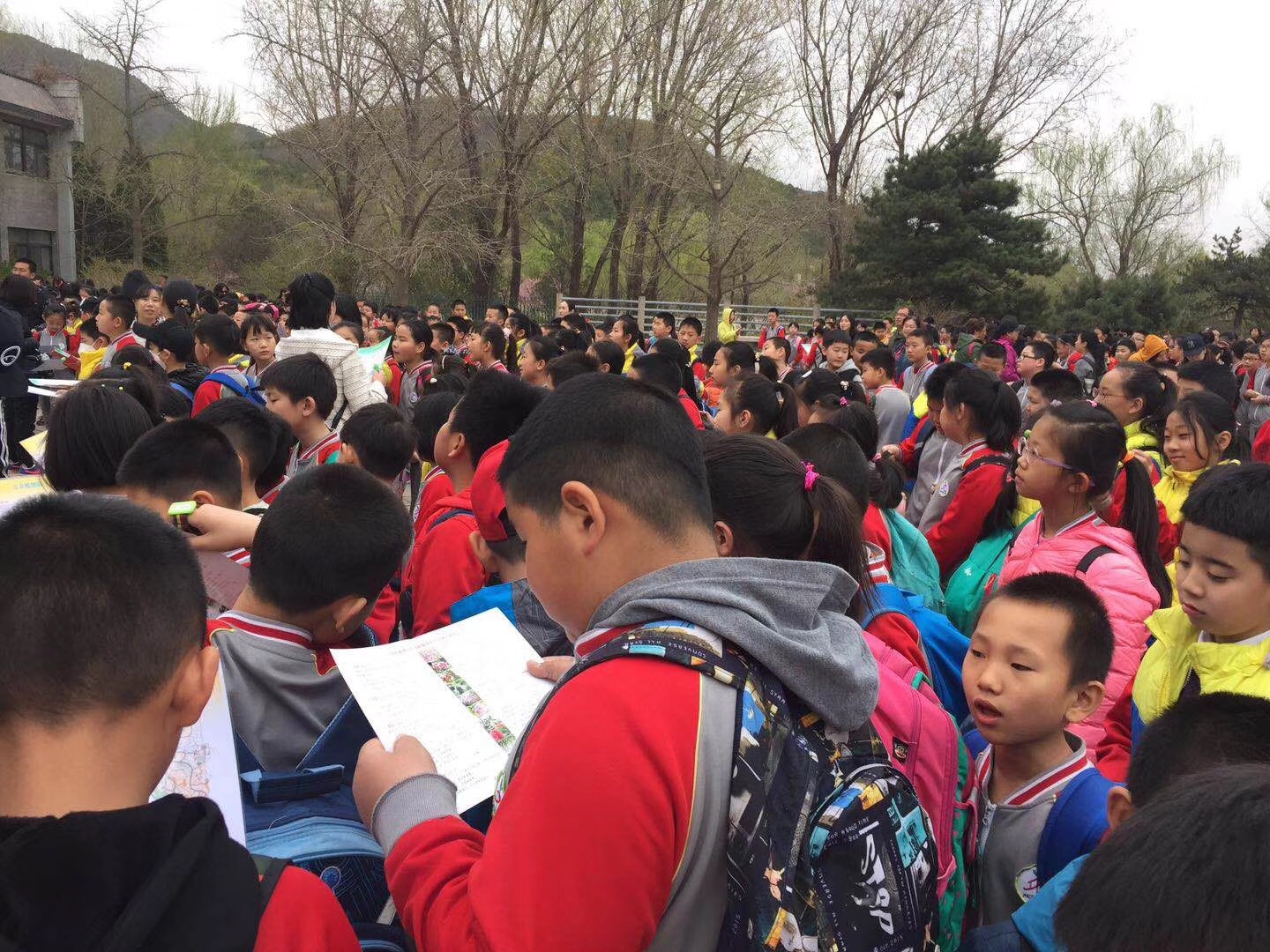 2018年4月3日大红门一小在北京植物园参加弘扬传统文化品古典诗词的定向团队合作训练!