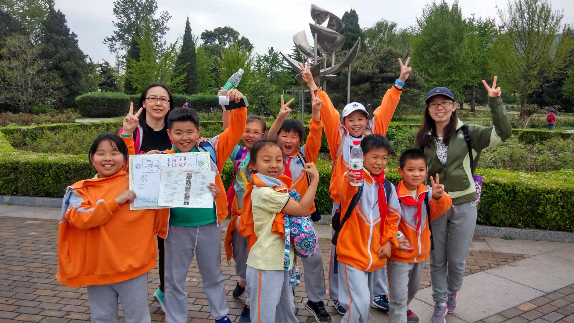 今天西城区北京小学本校和丰台二中附属小学在校长带领下和其它区的四所学校的师生同时在青龙湖和植物园举办了“学习军人精神,成就卓越团队”和“弘扬中华优秀文化,古典诗词欣赏”社会实践活动!