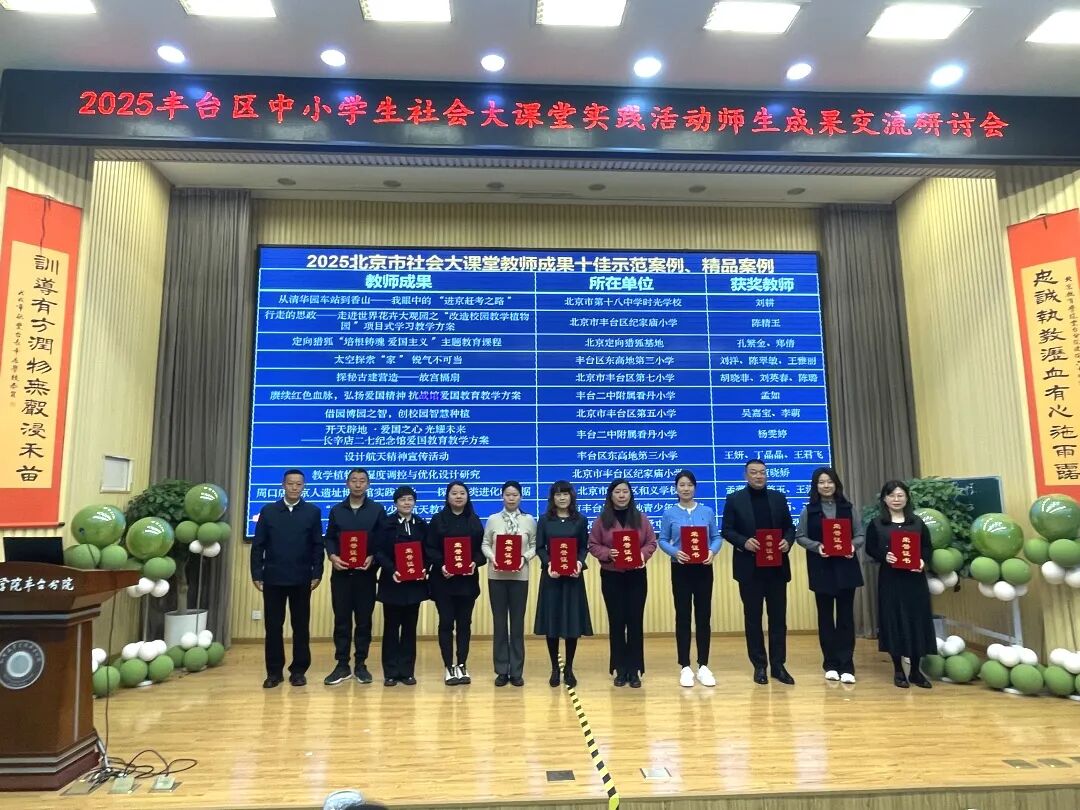 在颁奖环节,高付元秘书长、基教二科王沁艳、北京市丰台区教育学院副院长刘婧分别为2025年丰台区中小学生社会大课堂教师成果十佳示范案例和精品案例、学生成果十佳示范案例和精品案例、“七个一”十佳示范案例和精品案例颁奖。