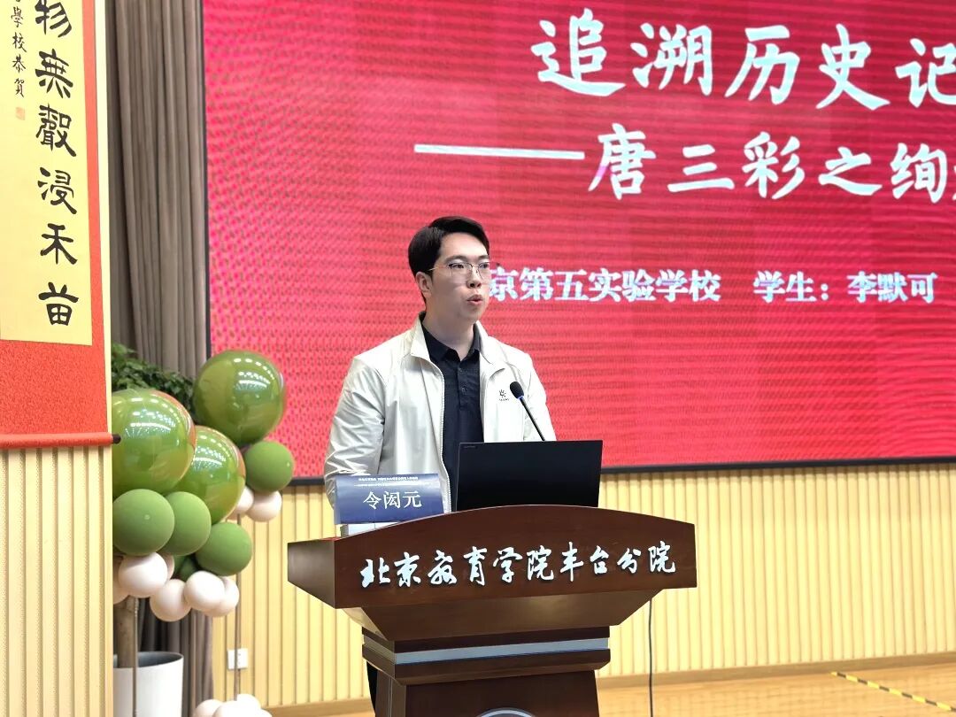 北京市第五实验学校的李默可同学的指导老师令闳元带来《追溯历史记忆——唐三彩之绚烂辉煌》的成果分享,以细腻的观察、详实的资料,带领大家走进唐三彩的世界,从器物造型、色彩工艺到历史价值,层层深入地展现了传统文化的魅力,体现了社会大课堂在拓宽学生视野、培养历史素养方面的重要作用。