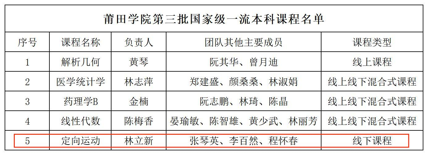 近日,教育部正式发布《关于公布第三批国家级一流本科课程认定结果的通知》(教高函〔2025〕9号),由我院林立新教授牵头负责的《定向运动》课程成功入选“国家级线下一流课程”,实现了我院在国家级一流本科课程建设中“零的突破”。