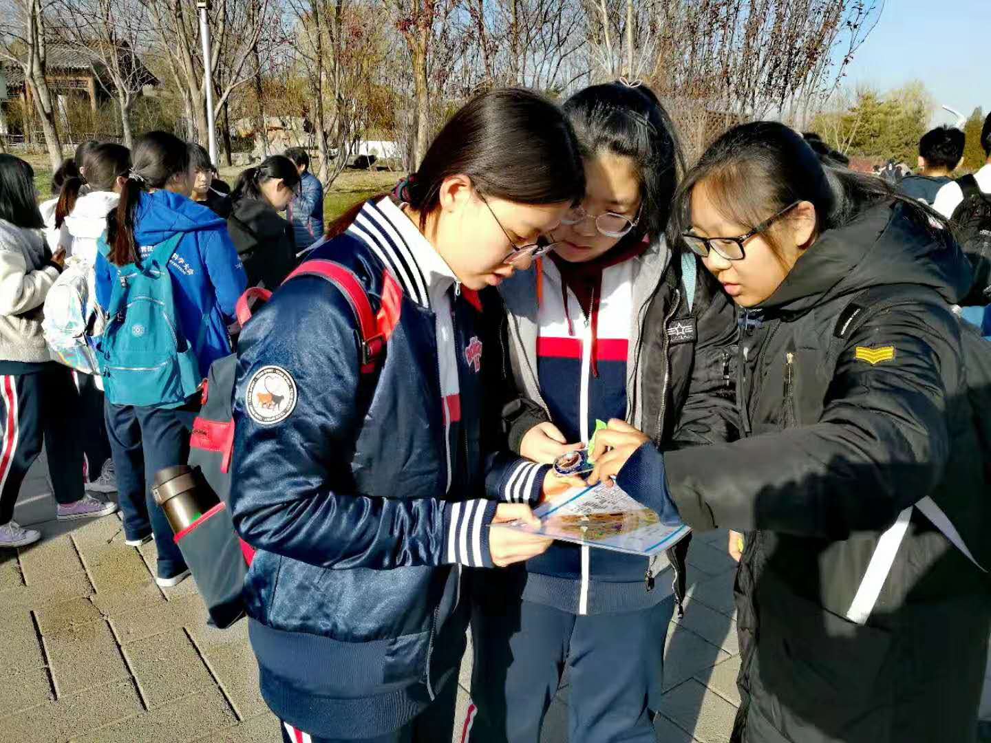 朝阳华师一附中同学们来到了北京园博园,举办了定向越野传统文化,欣赏中华园林,品味古诗词定向猎狐活动