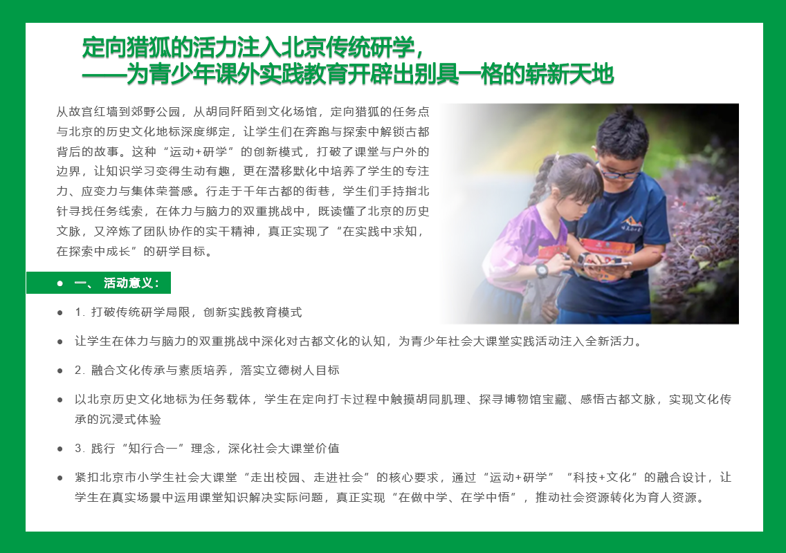 定向猎狐活动注入北京传统研学——为青少年课外实践教育开辟出别具一格的崭新天地