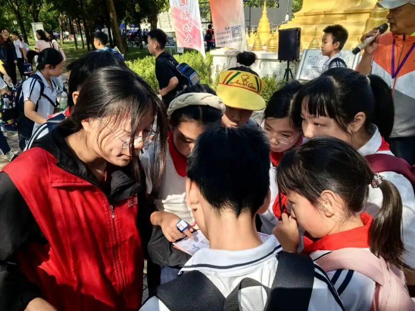“出发!”随着指令下达,各小组迅速行动。园内小径上、草坪旁,随处可见同学们围在一起研究路线的身影:有人捧着地图圈画点位,有人举着指南针调整方向,有人负责核对打卡器数据。遇到路线走错或是找不到点位的挫折时,大家总会想起工作人员讲述的抗战故事——先辈们曾在更艰难的处境中坚守,如今这点挑战更要迎难而上。互相鼓劲、重新规划后,当隐藏的打卡点被找到,激动的欢呼声在公园里回荡,这不仅是挑战成功的喜悦,更是对“团结协作、永不言弃”民族精神的生动践行。