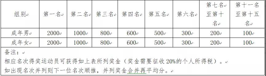(二)成年组录取前十五名颁发奖金、奖牌。