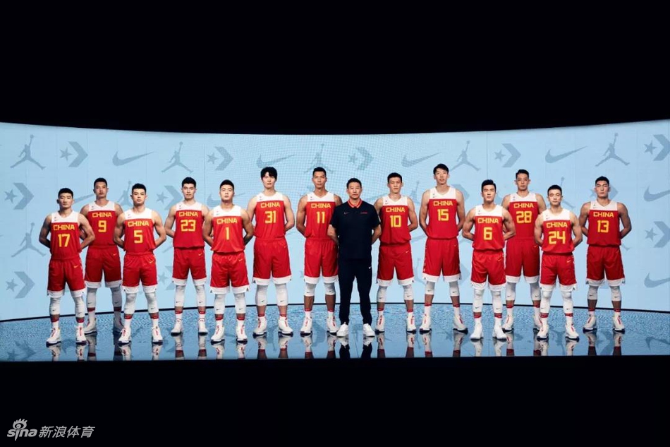 2019篮球世界杯即将于本月底在中国开赛。8月8日,2019年篮球世界杯中国男篮战袍在北京亮相。发布会现场,包括易建联、郭艾伦、周琦在内的13名中国男篮队员在主教练李楠的带领下,全部身着新版战袍、战靴登台。