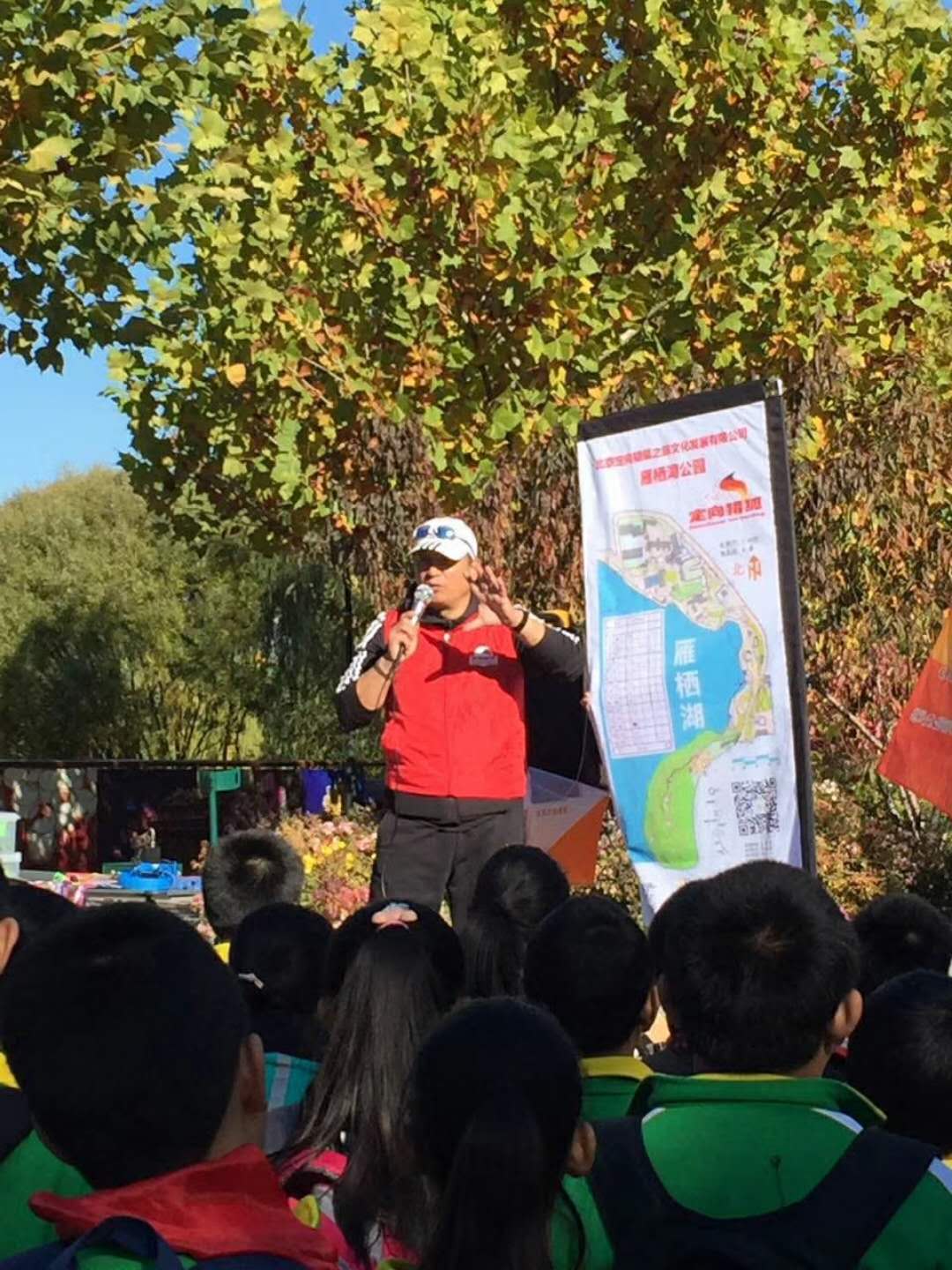 2017年11月03日丰台靛厂小学和顺义牛栏山中心小学来到雁栖湖进行定向猎狐活动