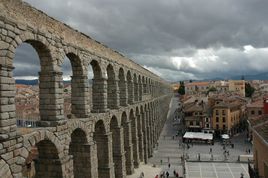 塞哥维亚古罗马输水道,大概建于公元50年前后,迄今完好,令人称奇。这一建筑以双层拱洞为特点,给人留下深刻的印象,成为塞哥维亚历史古城一道亮丽的风景线。在这里,人们还可以参观阿尔卡萨尔这一始建于11世纪,完成于16世纪的哥特式大教堂。
