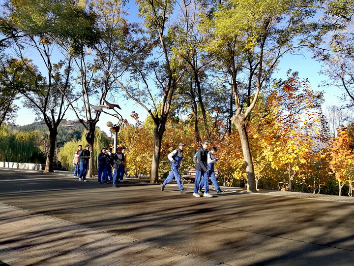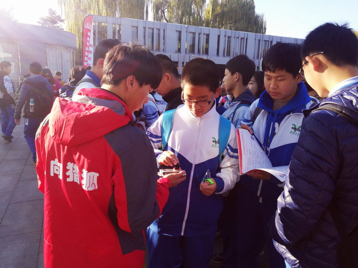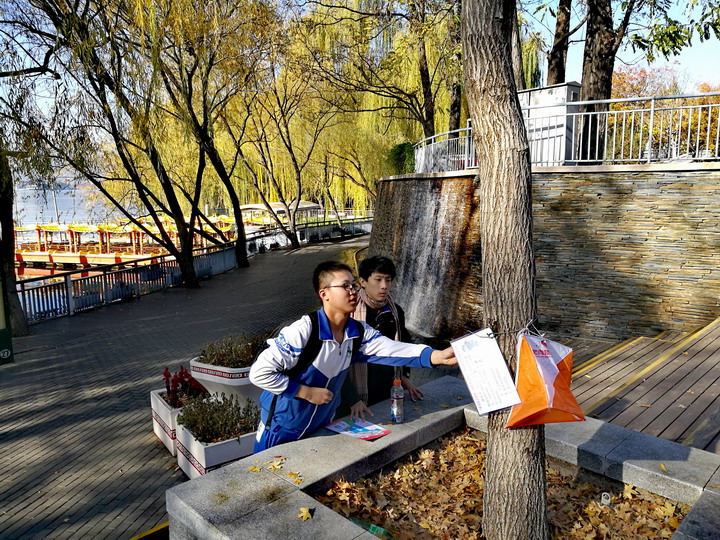 2018年11月9日来自海淀区的同学们在秋高气爽的季节里来到风景秀丽的雁栖湖公园举办社会大课堂定向猎狐活动。