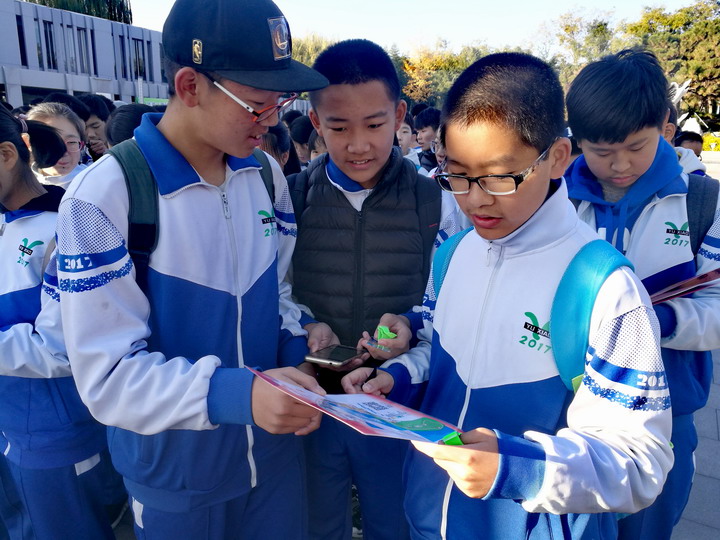2018年11月9日来自海淀区的同学们在秋高气爽的季节里来到风景秀丽的雁栖湖公园举办社会大课堂定向猎狐活动