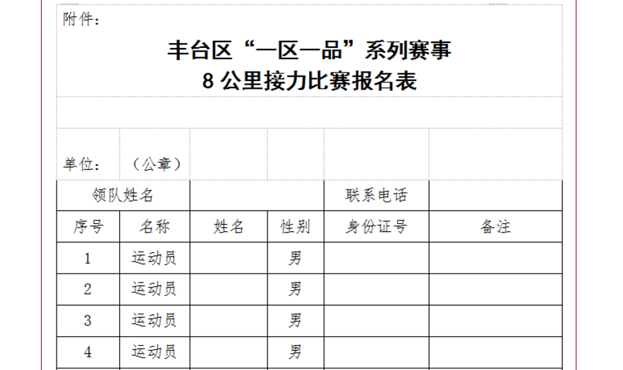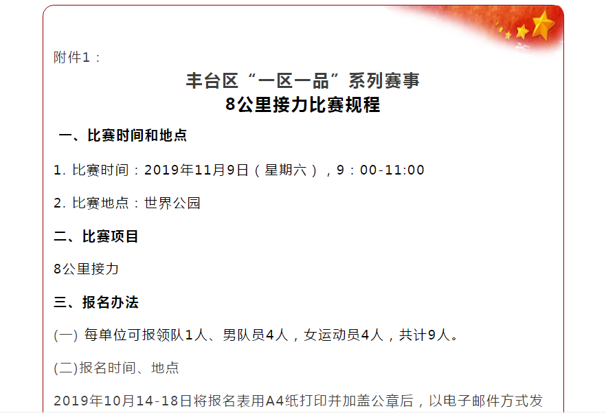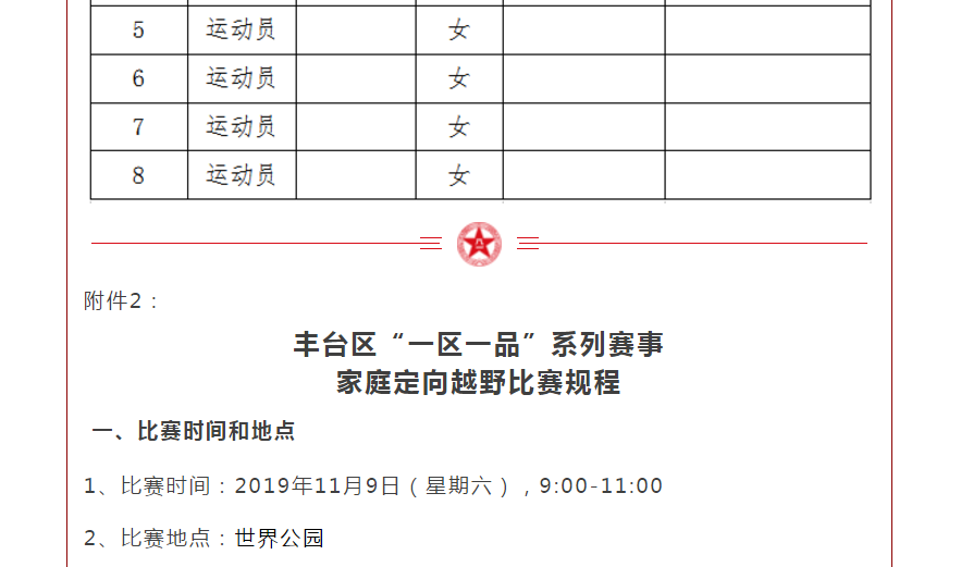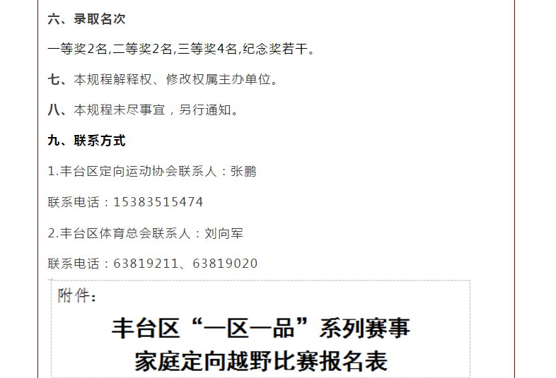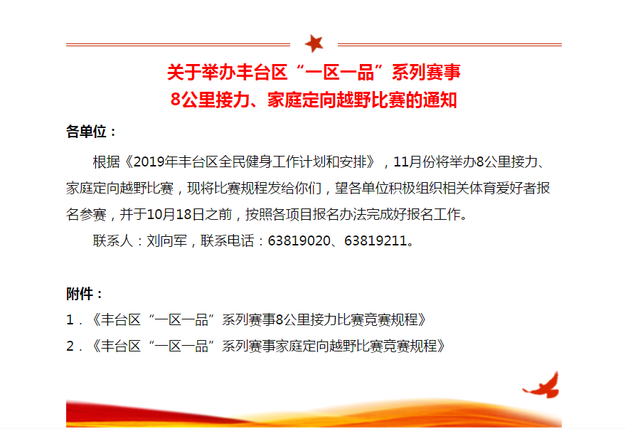 丰台区“一区一品”系列赛事8公里接力、家庭定向越野比赛的通知