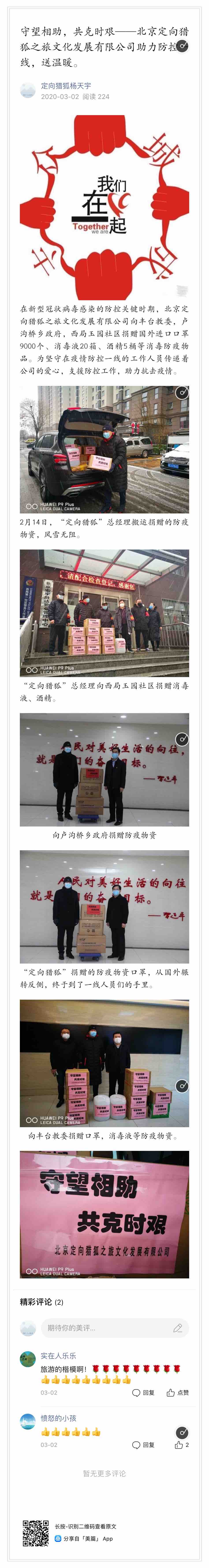 守望相助,共克时艰——北京定向猎狐之旅文化发展有限公司助力防控一线,送温暖。