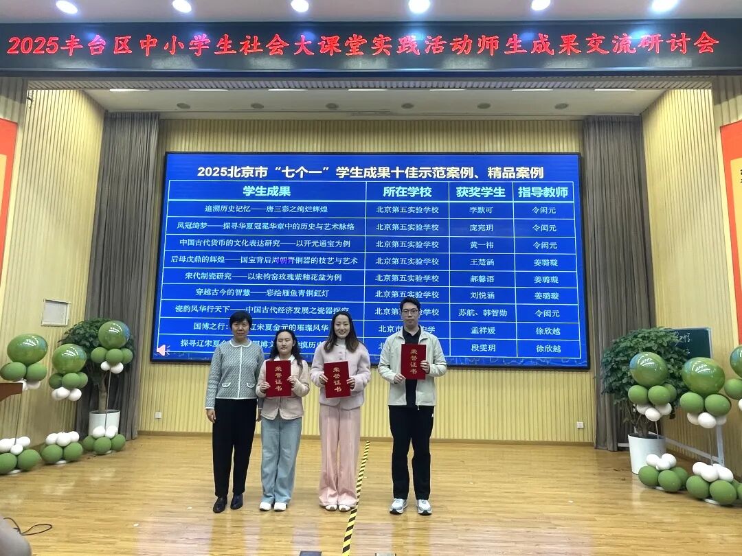 在颁奖环节,高付元秘书长、基教二科王沁艳、北京市丰台区教育学院副院长刘婧分别为2025年丰台区中小学生社会大课堂教师成果十佳示范案例和精品案例、学生成果十佳示范案例和精品案例、“七个一”十佳示范案例和精品案例颁奖。