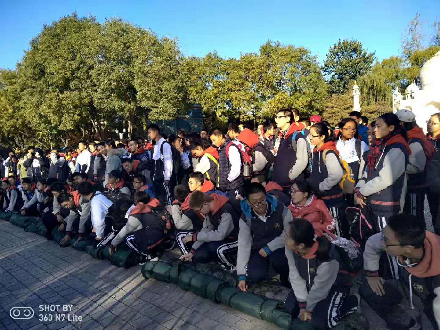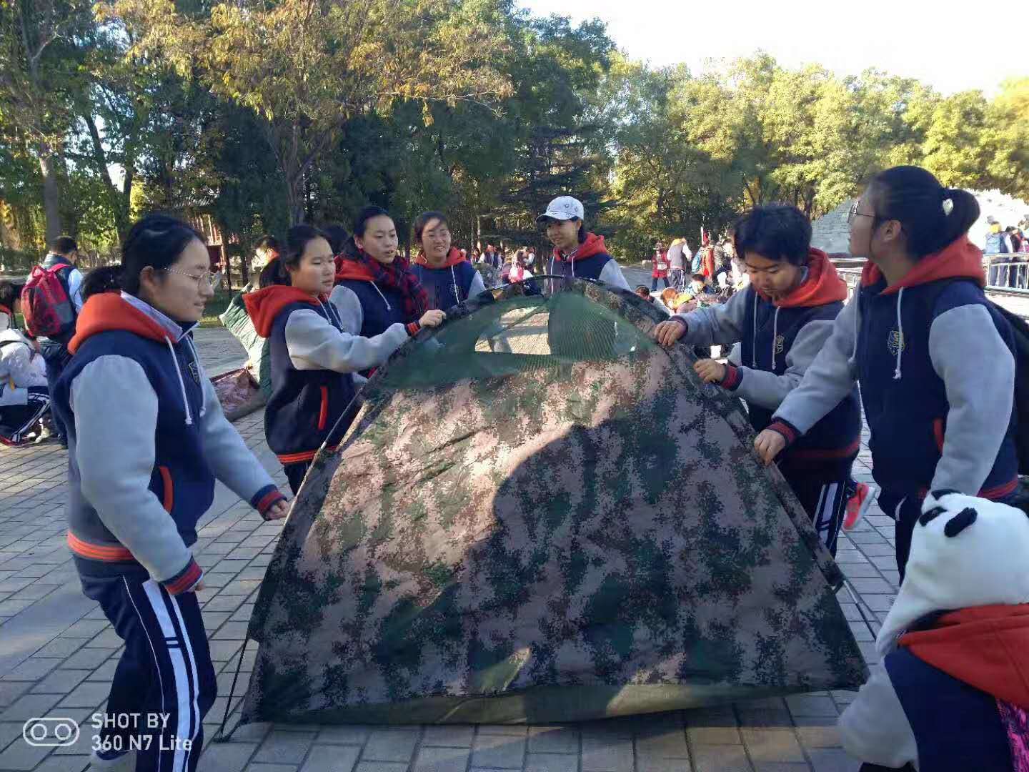 海淀区57中学的高中年级的同学们在世界公园定向猎狐一带一路的主题活动