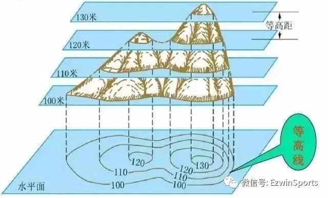 等高线:把某一地貌从下到上,按相等的高度,进行一层一层的水平切割,则地貌表面上就会出现一条一条弯曲的切割痕迹线(截面边缘线),同一条截面边缘线上的高度相等,将它们垂直投影到平面上形成的曲线。
