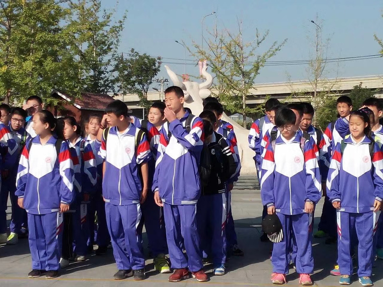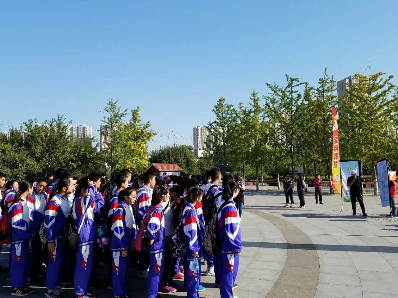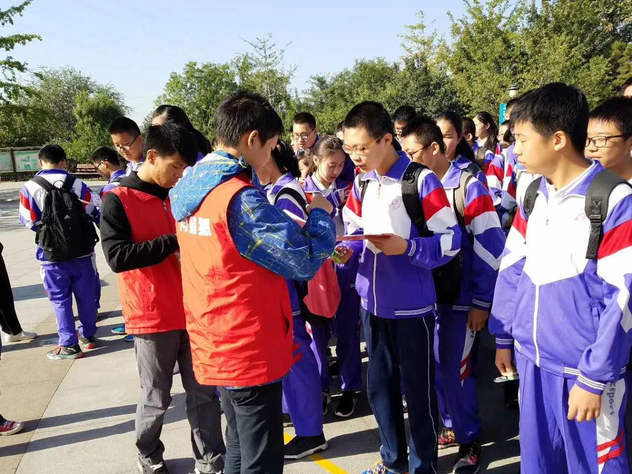 2017年9月29日苹果园中学全体学生来到永定河参加以“建军九十周年”为主题的定向猎狐活动
