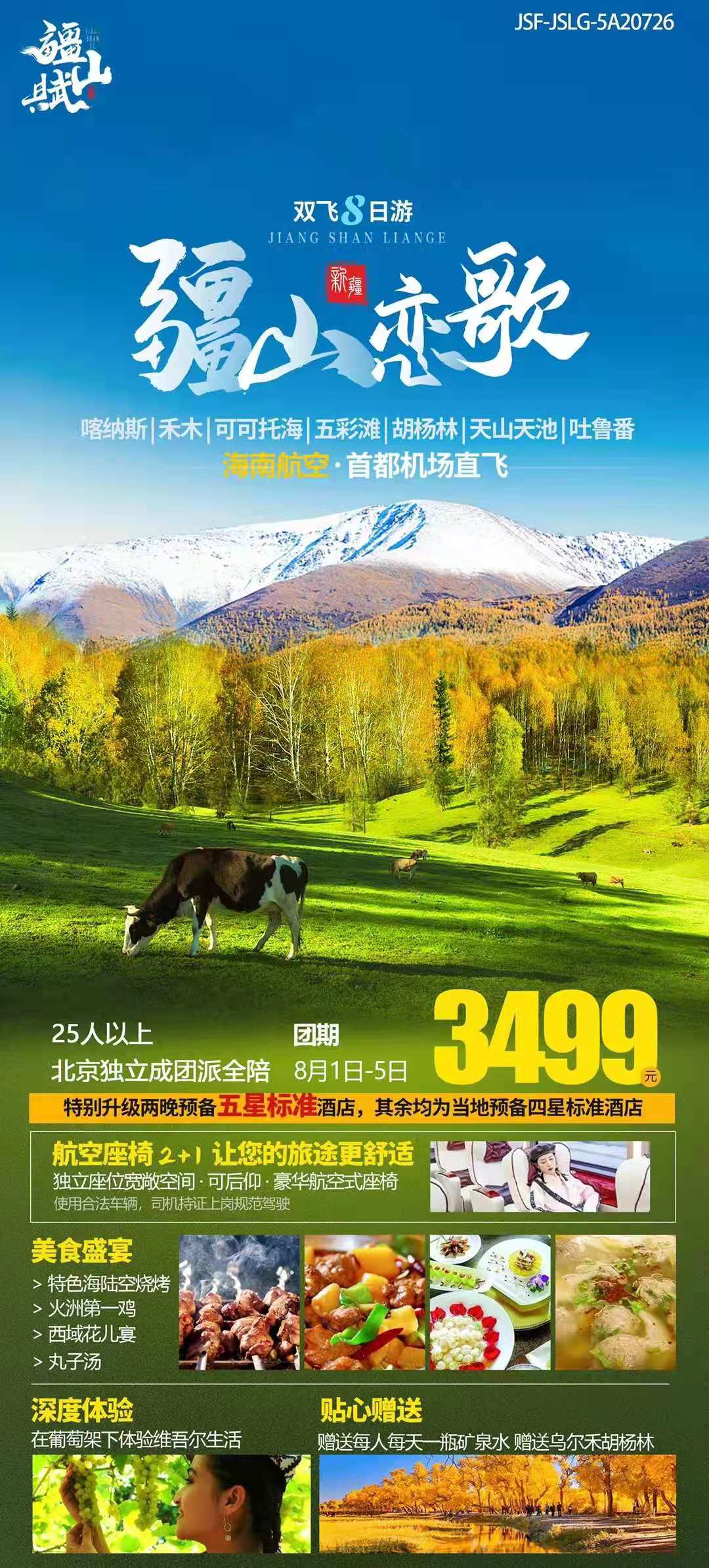 疆山恋歌、环游北疆 首都机场、直飞乌市 航空座椅、舒适2+1 可可托海、禾木、喀纳斯 五彩滩、吐鲁番、……