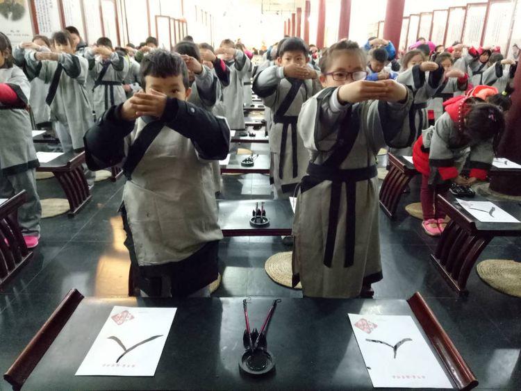 交道中心校“走进国子监”社会实践活动冬日鲜活的太阳,是奖励给祖国花朵的光芒!夜空闪烁的星星,是一颗颗智慧的心在跳动!晨风吹过,送来清澈的凉爽!在这冬日里,交小全体师生来到中国古代的国家最高学府和教育管理机构~国子监。这里又被称为"太学"、"国学"。作为国家教育管理机构,国子监所确立的管理制度和教学方法,对全国各级各类学校都有着广泛而深刻的影响:它所刊刻颁发的许多儒家经典、文史典籍,起到了统一全国教材和传承中华文明的作用。国子监的教学管理制度和教学系统,在世界教育史上都占有独特的地位。北京国子监历经元、明、清三代,目前是唯一保存完整的古代最高学府(中央大学)旧址。也是中国古代高等教育面向世界的一个窗口。今天我们有幸来到这里,是对全体学生精神境界的最高洗礼!![]() 一、开笔礼!交小全体学生在学堂行开笔礼,不仅要学会知识,更要明白怎样感恩、怎样做人!全体孩子们1、换汉服、正衣冠;2、朱砂开智;3、写"人"字;4、齐背弟子规;5、向先师孔子行拜师礼~四拜高一礼6、向自己的老师行礼~三拜谢师礼