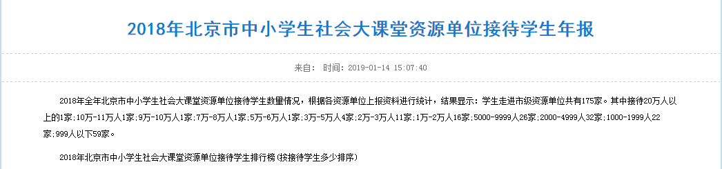 2018年北京市中小学生社会大课堂资源单位接待学生年报