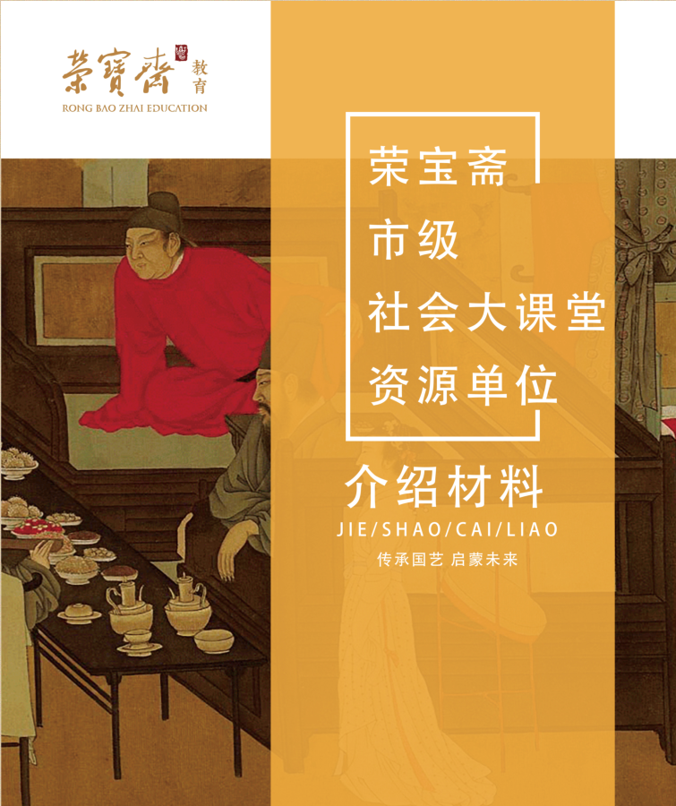 荣宝斋教育作为荣宝斋旗下教育板块,秉持“传承国艺,成就未来”的教育宗旨,充分挖掘荣宝斋三百余年文化积淀与教育资源,致力于传统文化、艺术的大众普及教育。荣宝斋教育开发设计了各类精品课程及活动百余种,内容既包含经典诗、书、画、印,也涉及花艺、香事、茶道等文人生活雅趣。