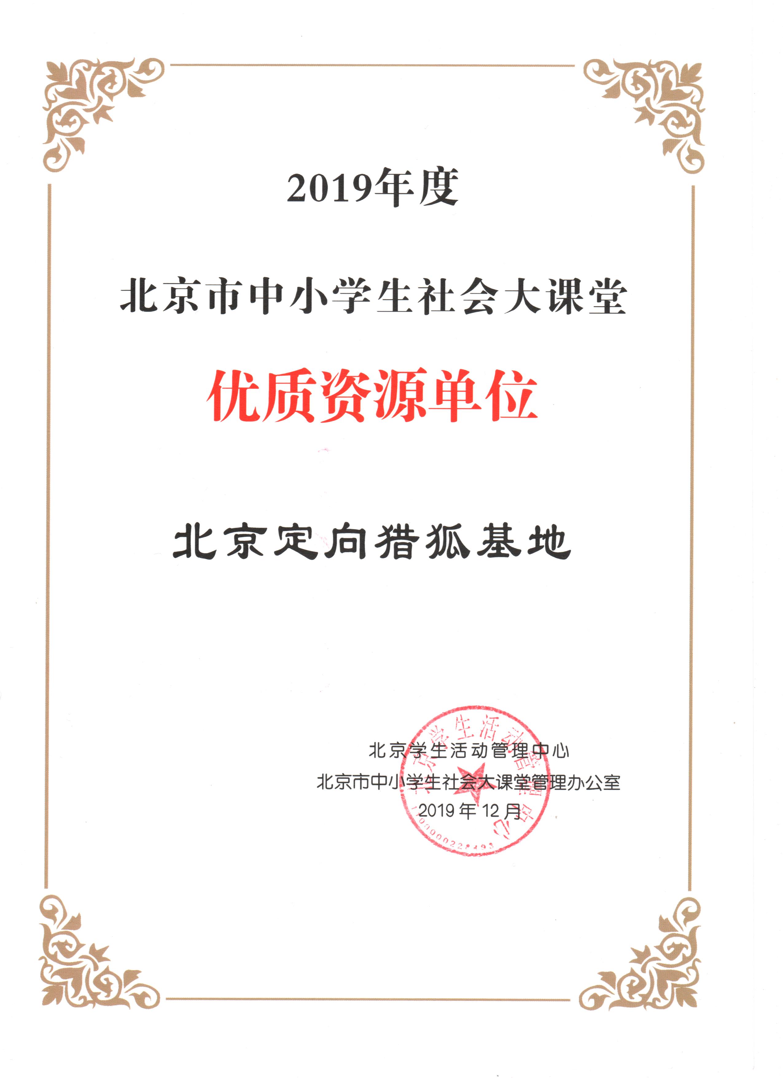 重磅喜讯!北京定向猎狐基地被评为北京市中小学生社会大课堂优质资源单位!