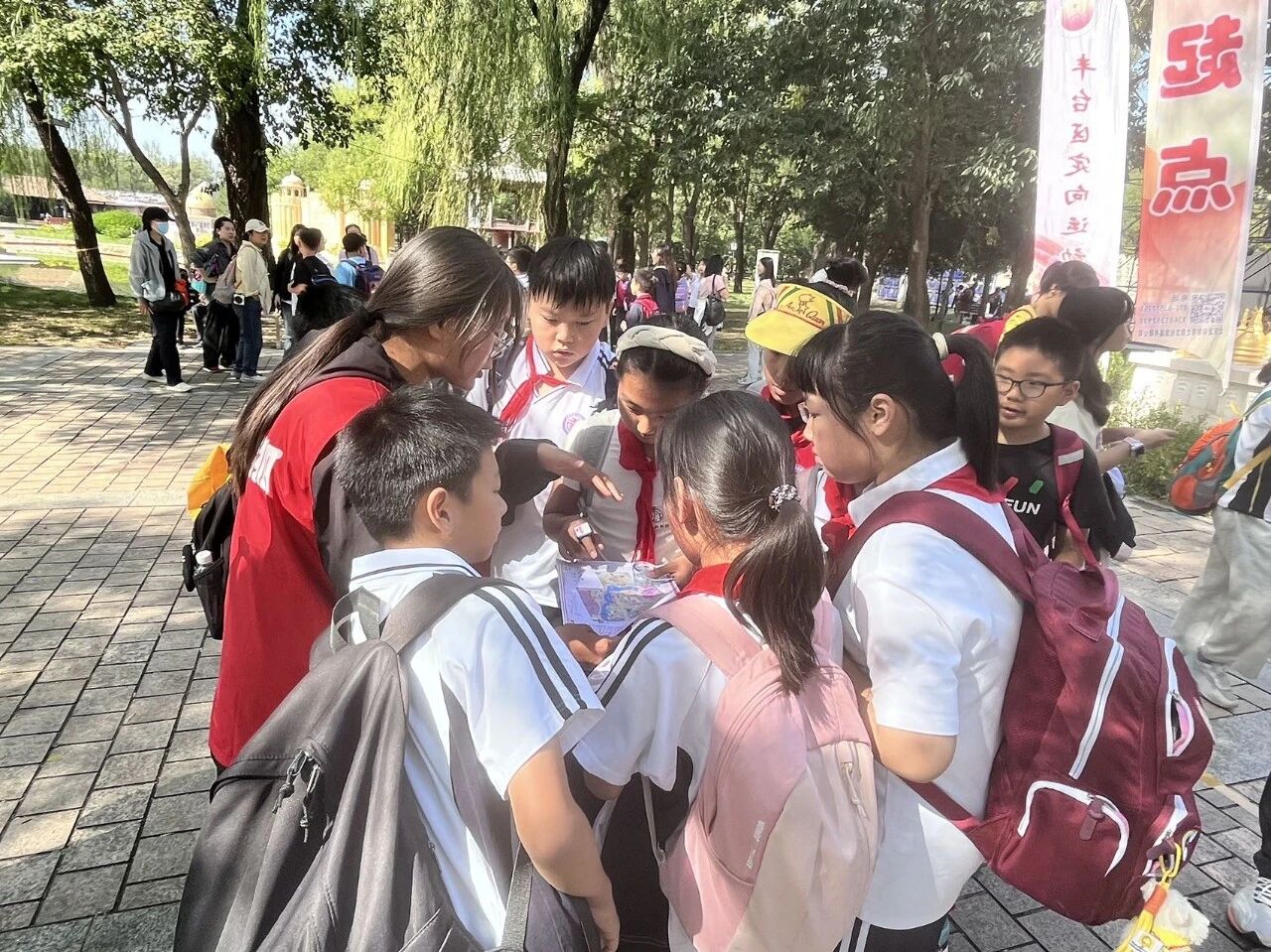 “出发!”随着指令下达,各小组迅速行动。园内小径上、草坪旁,随处可见同学们围在一起研究路线的身影:有人捧着地图圈画点位,有人举着指南针调整方向,有人负责核对打卡器数据。遇到路线走错或是找不到点位的挫折时,大家总会想起工作人员讲述的抗战故事——先辈们曾在更艰难的处境中坚守,如今这点挑战更要迎难而上。互相鼓劲、重新规划后,当隐藏的打卡点被找到,激动的欢呼声在公园里回荡,这不仅是挑战成功的喜悦,更是对“团结协作、永不言弃”民族精神的生动践行。