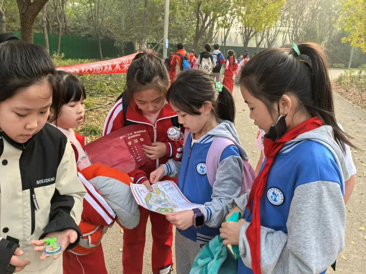 丰台五小新发地分校主校区四至六年级学生来到北京冬奥公园,开展定向猎狐活动。